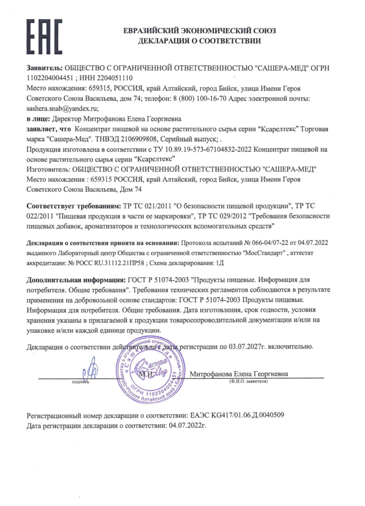 | Вспомогательные вещества | Крахмал, диоксид кремния (E551) |